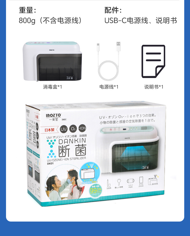 INOZTO紫外线负离子消毒机办公文具电子产品消毒兼容空气净化除菌...
