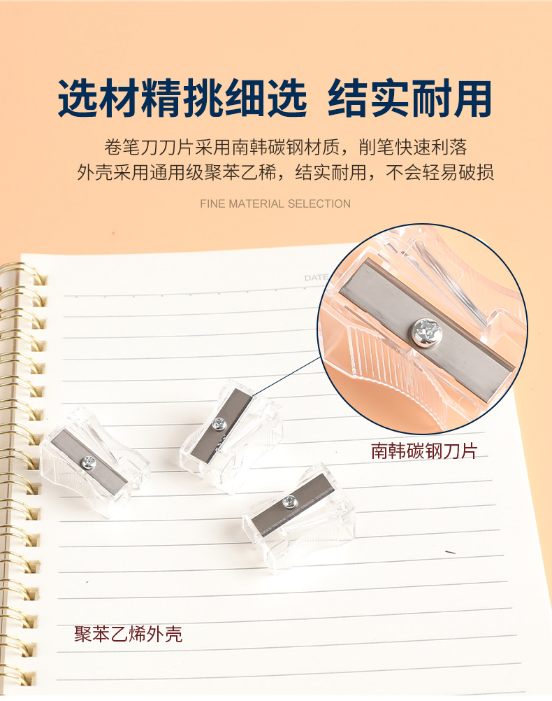 德国工艺长方形塑料卷笔刀孔径11.0MM透明原色迷你手持铅笔削笔刀...