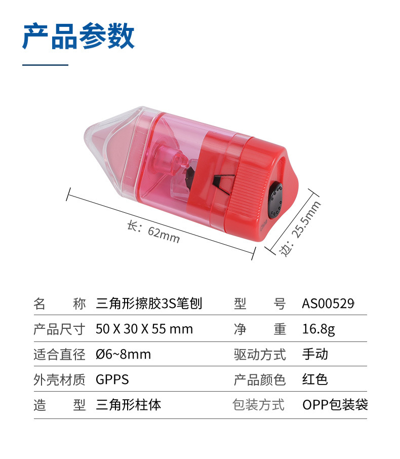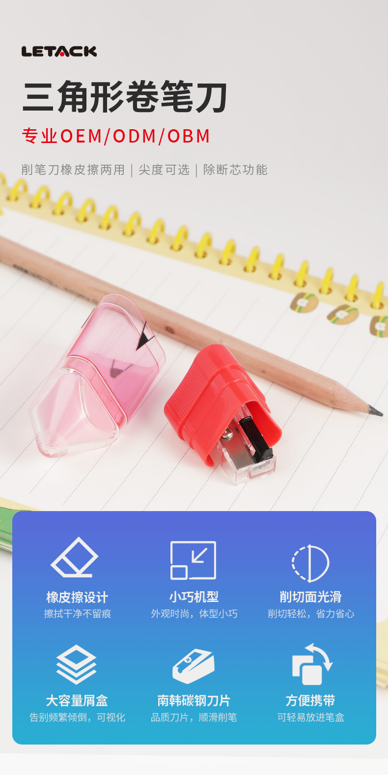 OME定制三角形卷笔刀 创意文具礼品铅笔刨 迷你单孔橡皮削笔刀...
