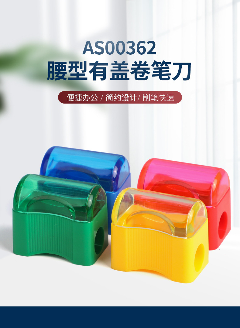 跨境供应简约聚苯乙烯外壳铅笔刀 腰型单孔卷笔刨 学生用品卷笔刀...