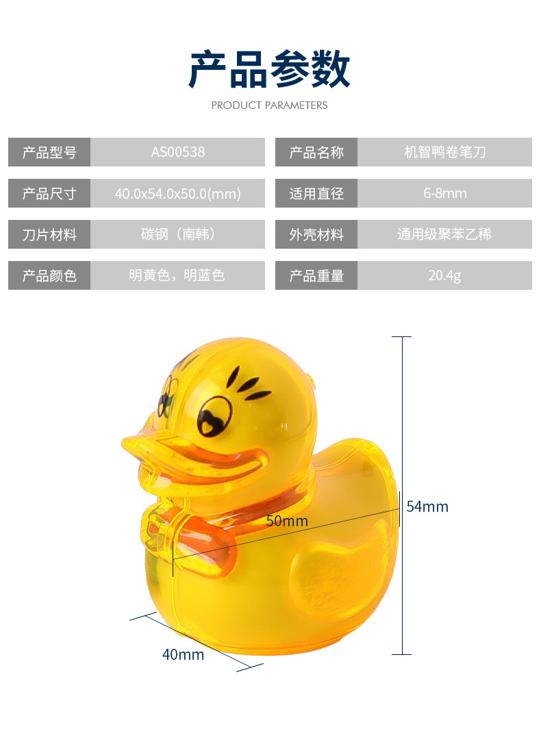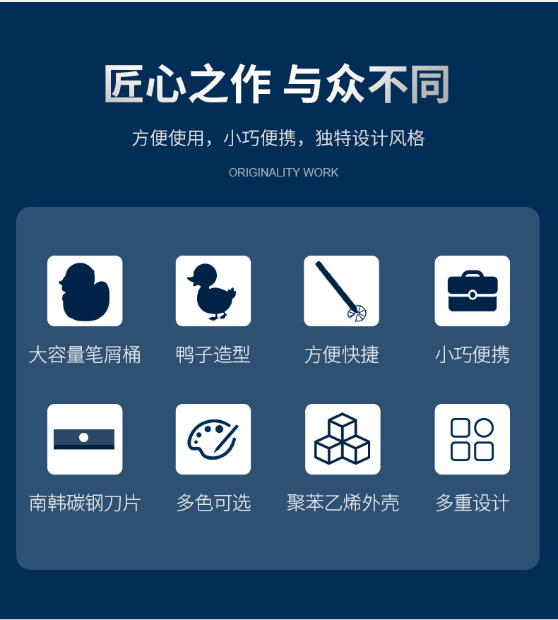 创意机智鸭造型卷笔刀定制南韩碳钢刀片铅笔刨高颜值小黄鸭削笔器...