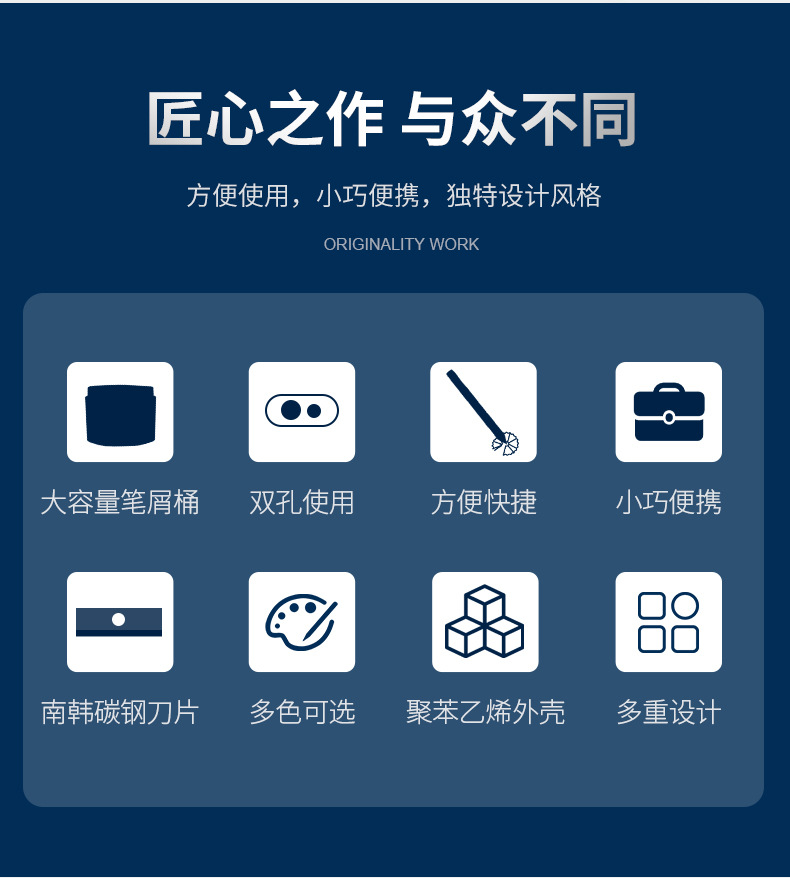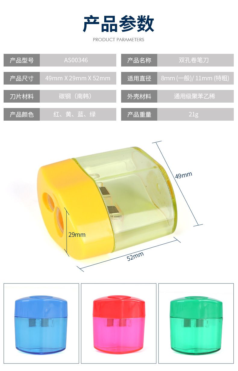 OEM定制双孔塑料卷笔刀创意文具小学生削笔器手动便携式铅笔刨...