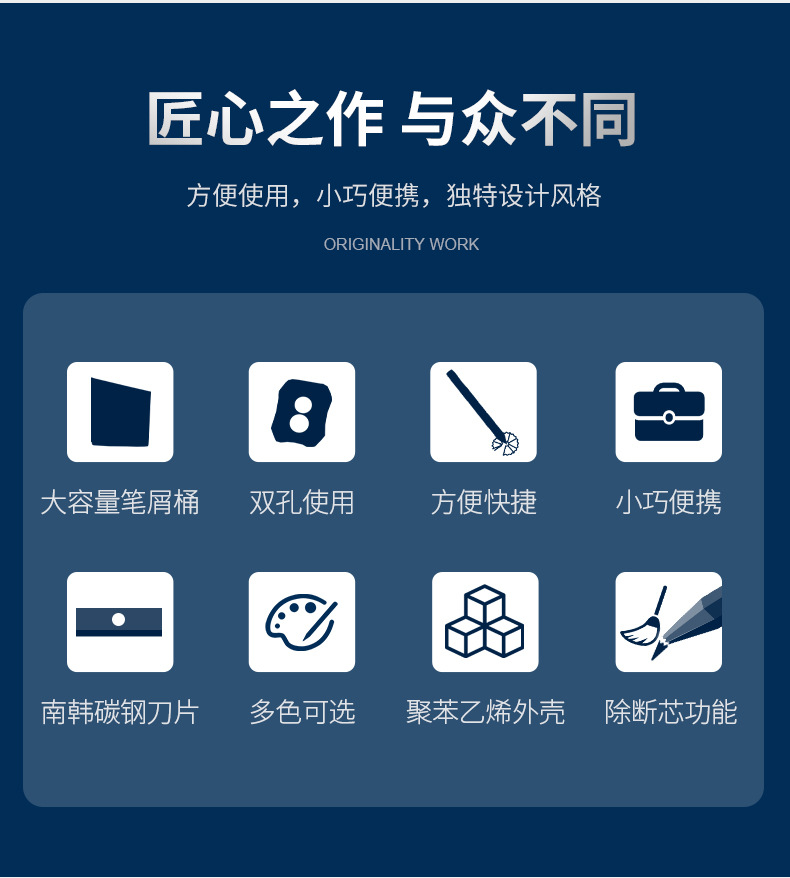跨境创意新款手动铅笔刨南韩碳钢刀片小学生单孔卷笔刀削铅笔神器...