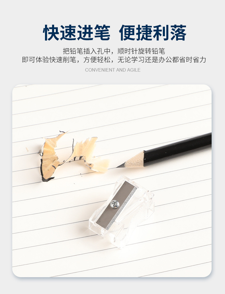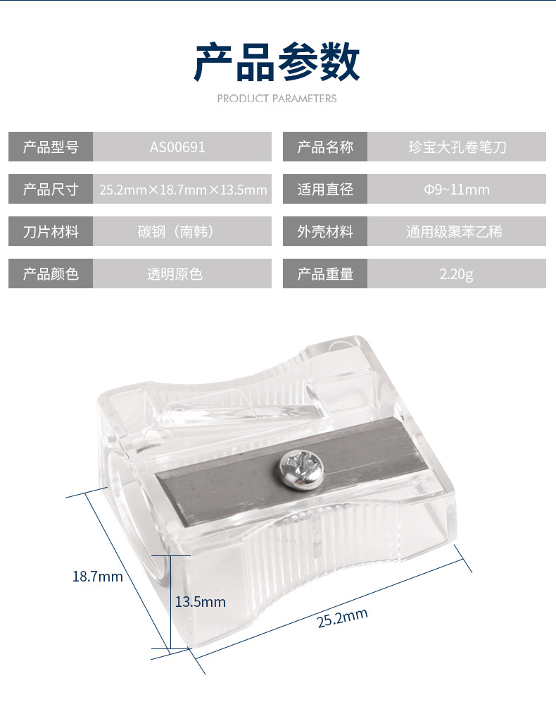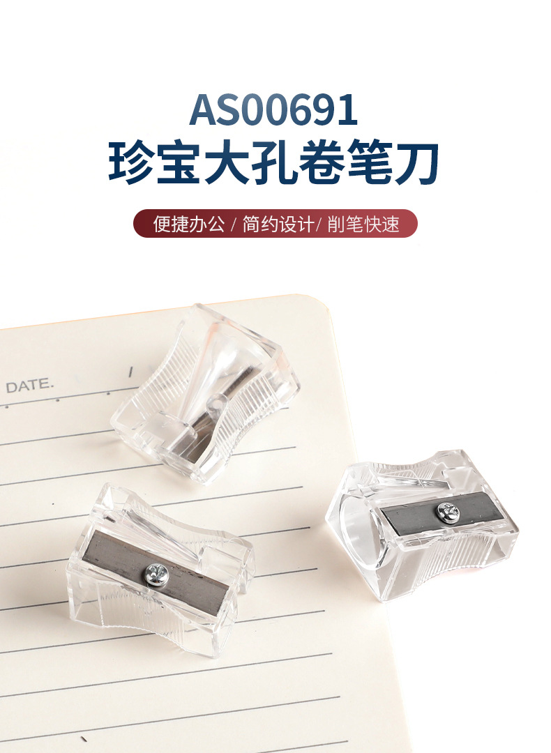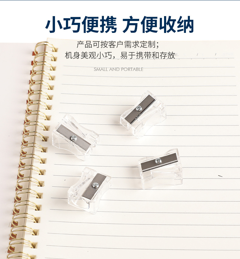 德国工艺长方形塑料卷笔刀孔径11.0MM透明原色迷你手持铅笔削笔刀...