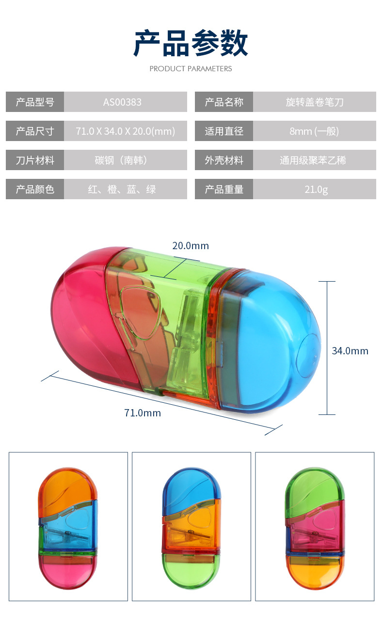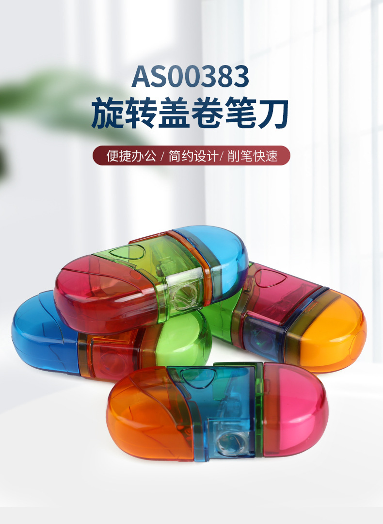 德国OEM订制旋转盖卷笔刀创意自动铅笔刨便携带小型彩色铅笔刨...