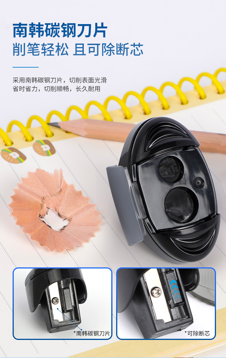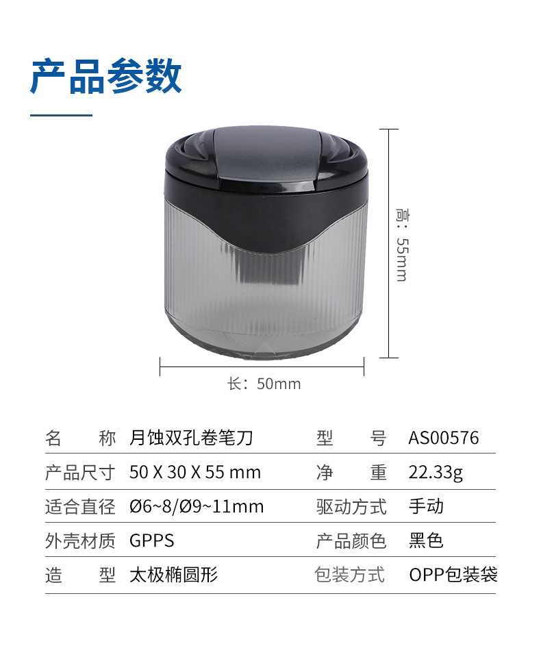 跨境热销小学生手动卷笔刀直立双孔椭圆形铅笔刨美术生笔芯铅笔刀...