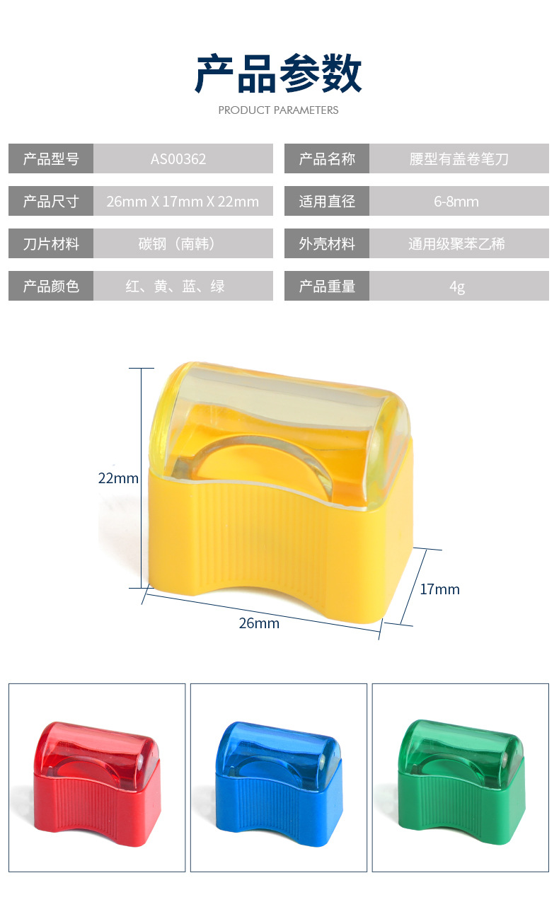 跨境供应简约聚苯乙烯外壳铅笔刀 腰型单孔卷笔刨 学生用品卷笔刀...
