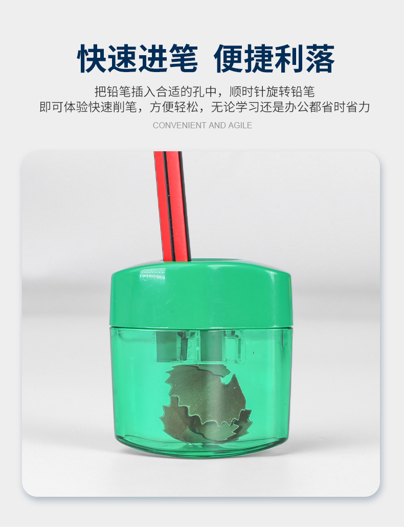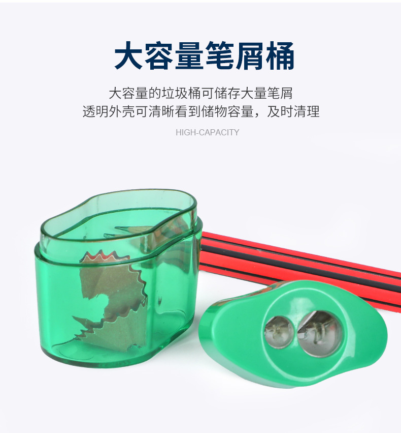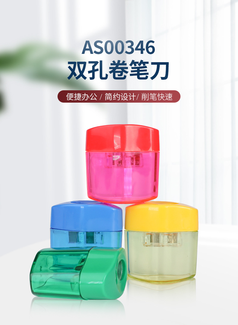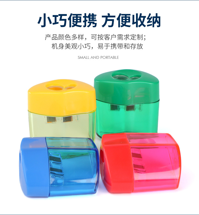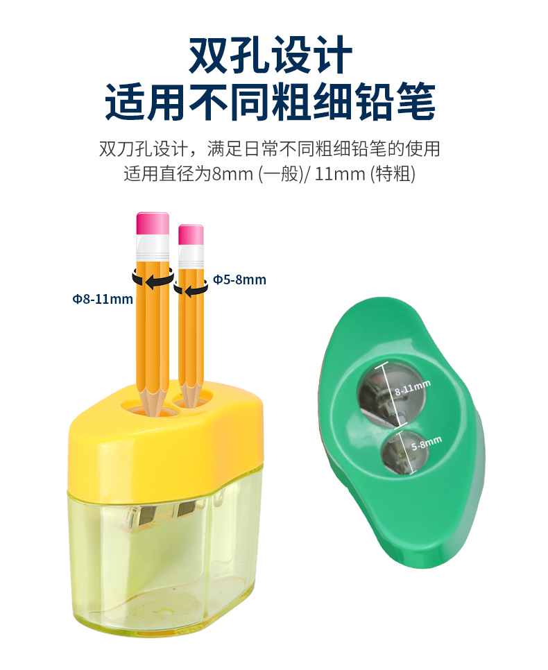 OEM定制双孔塑料卷笔刀创意文具小学生削笔器手动便携式铅笔刨...